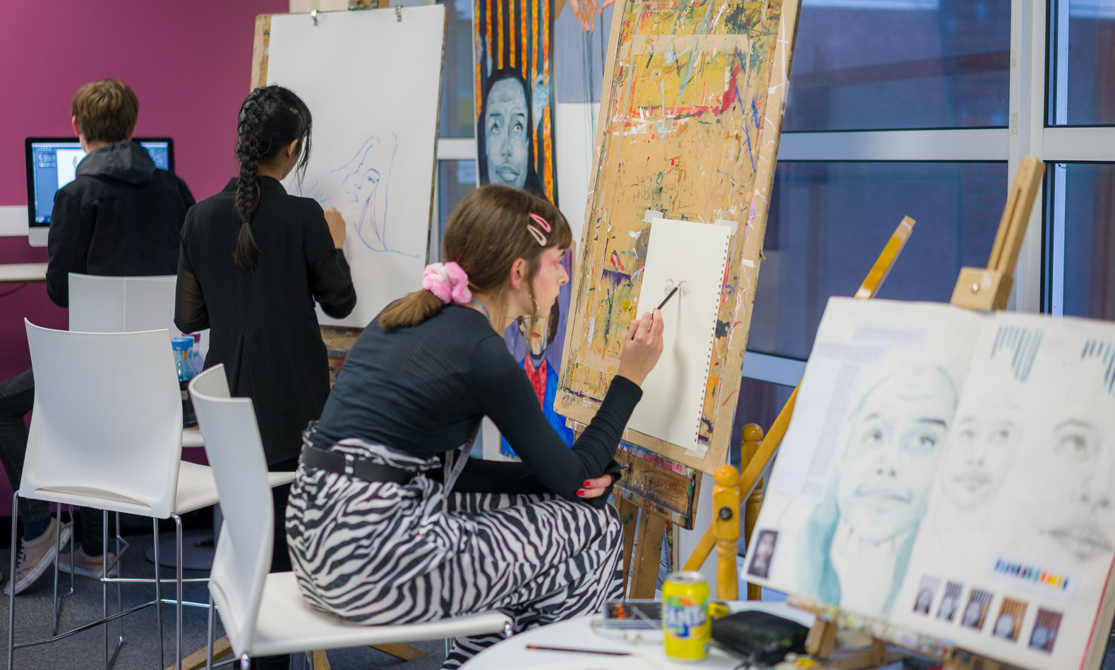 Our art workshops are found on the upper floor of the recently built Creative Arts Building and are kitted out with studio space, lots of equipment and resources. Everything our A Level Fine Art and Textiles students need for inspiration and creativity.